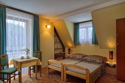 Ośrodek oferuje gościom pokoje z łazienkami, smaczną, domową kuchnię (całodzienne wyżywienie), dostęp do sieci WiFi, duży parking. Lokalizacja i otoczenie jakie posiada nasz Ośrodek Wypoczynkowy stwarzają doskonałe warunki do wypoczynku i rekreacji: duży plac zabaw dla dzieci, wiata grillowa, szałas ogniskowy, mini boisko do piłki siatkowej i koszykowej, ogród, pobliski lasek ze strumykiem. Oferujemy zatem noclegi tanie, w bardzo komfortowych warunkach, które sprzyjają wielu rozmaitym aktywnościom. Co więcej, nasze pokoje zapewniają także intymną przestrzeń osobom, które poszukują wyciszenia oraz chwil spędzonych z dala od miejskiego zgiełku.